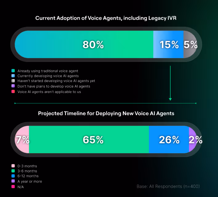 According to the Deepgram 2025 State of Voice AI Report, only 21% of enterprises report satisfaction with traditional IVRs. As a result, companies are allocating more resources to replace legacy systems with voice AI agents from the ground up, or scale the AI they already have in place.