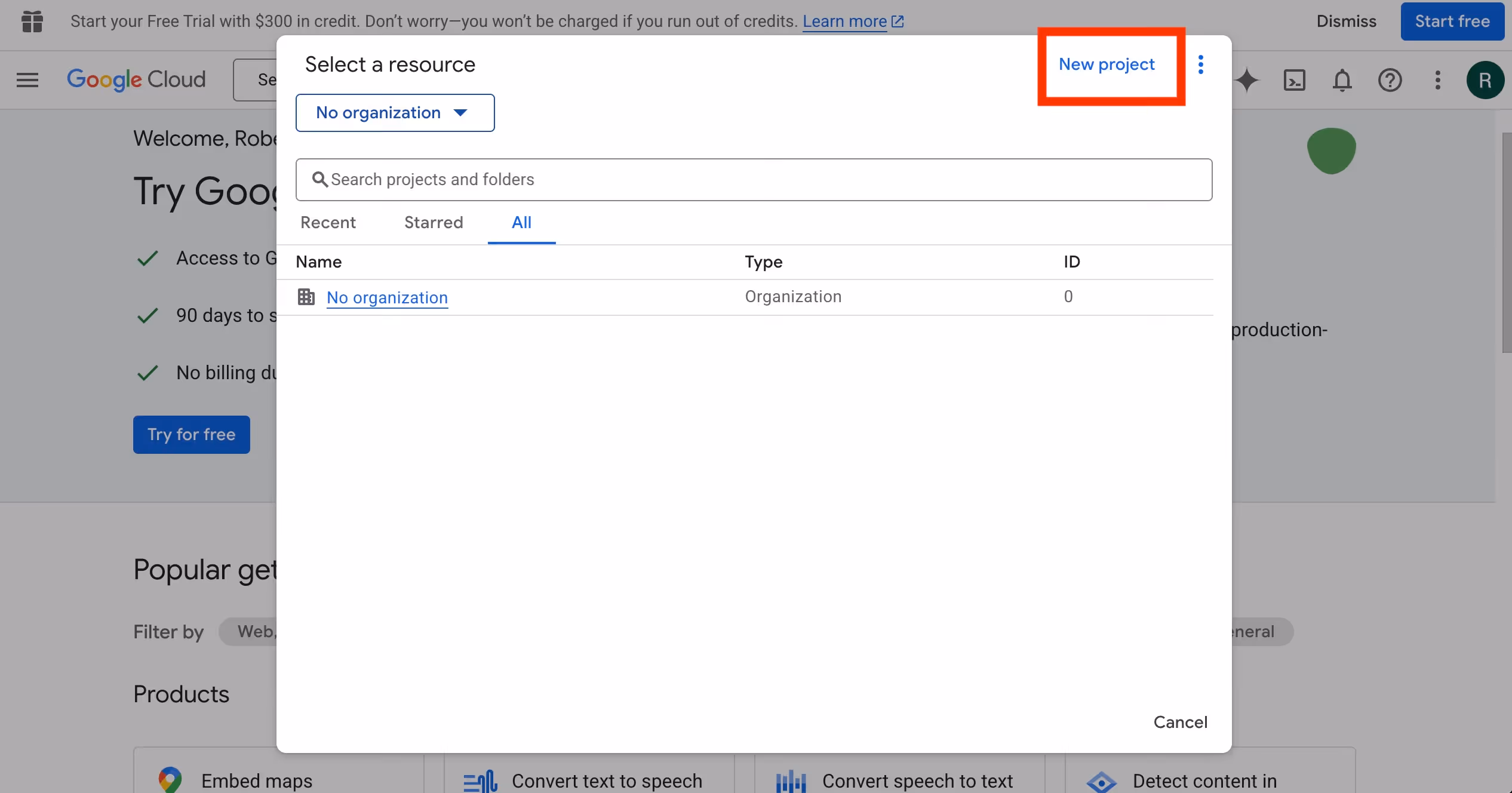 3. Create a new project (or select an existing one)