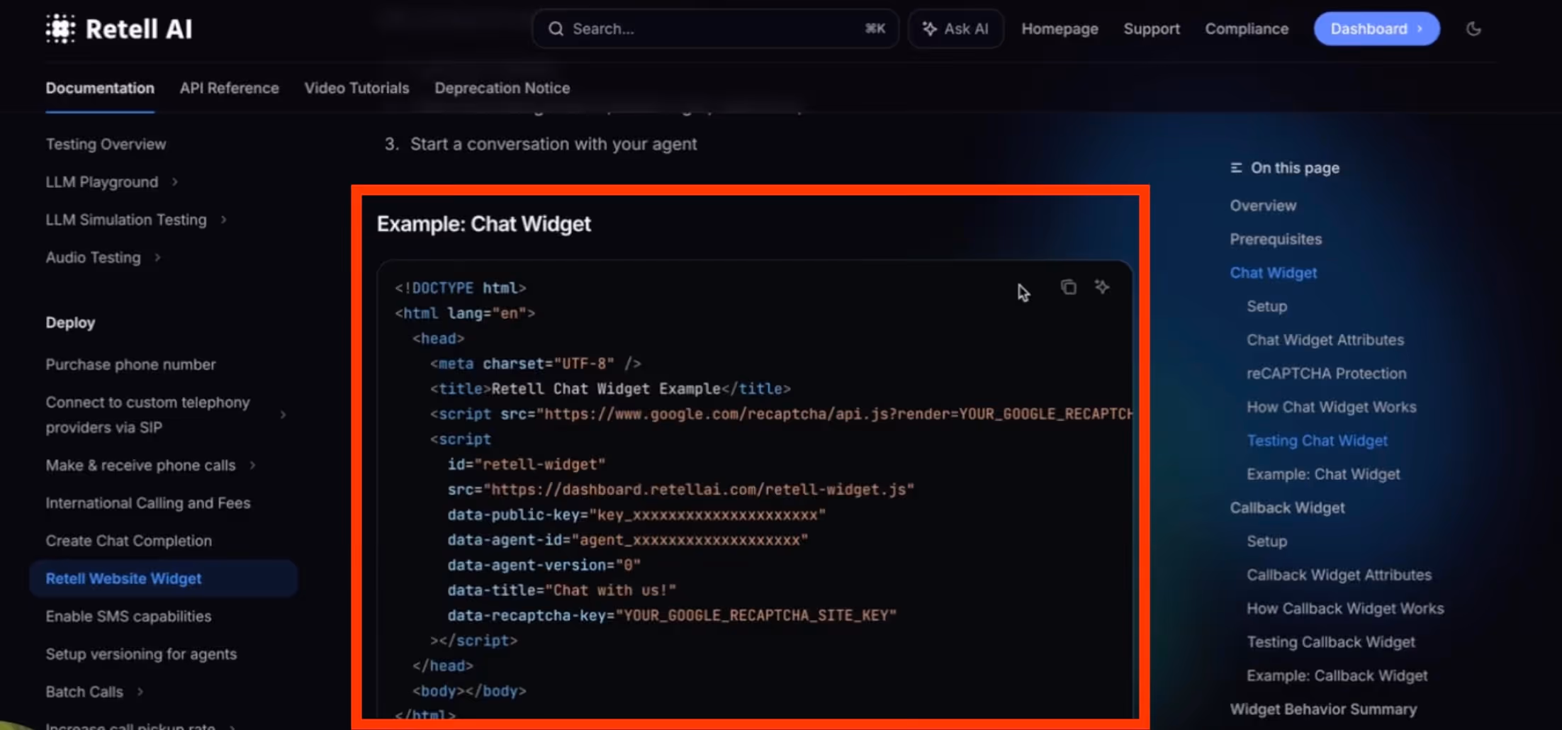1. Return to Retell documentation → Chat Widget section