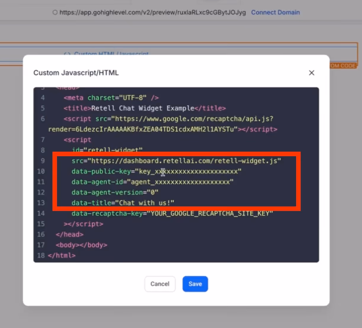 5. Add your Agent ID (found in your Retell AI agent settings)