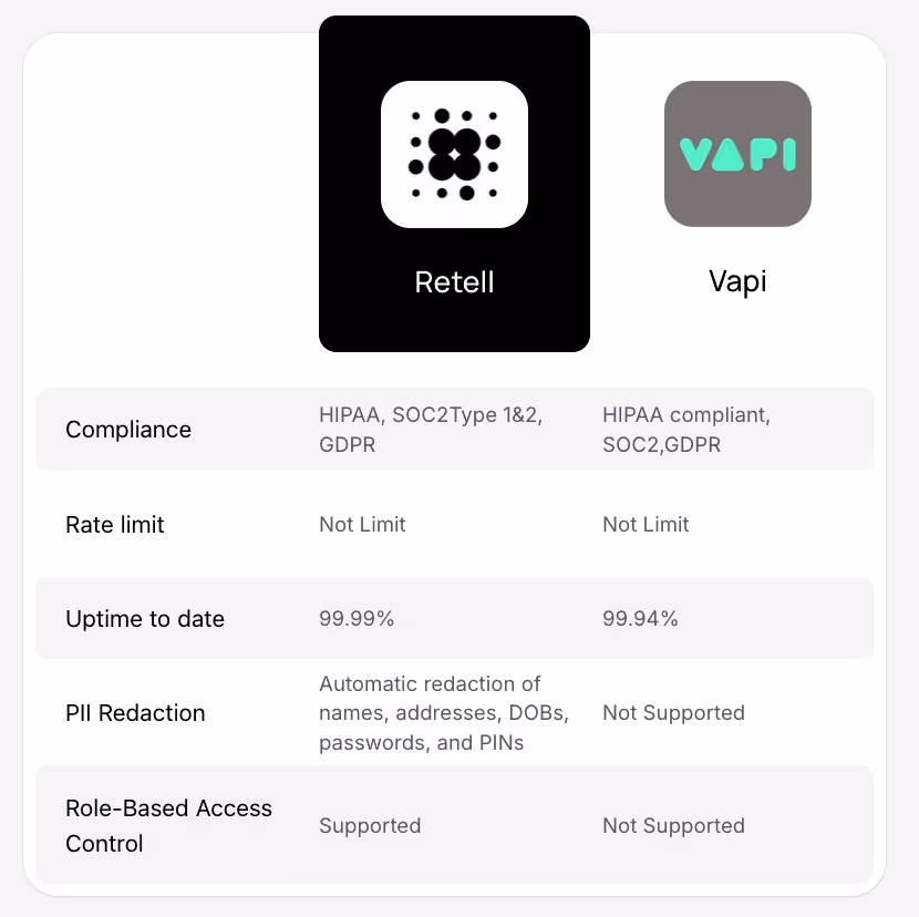 With flat compliance (HIPAA, SOC 2, GDPR) and , Retell AI ensures secure, reliable growth at any scale: